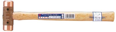 头的本体部位为铁,与以前全铜的锤子相比,强力打击作业下,柄穴不会变形,柄手不会折断